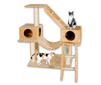 Die Platten, die Hängematte und die Höhlen sind mit Plüsch bezogen und bieten so bequeme Schlafplätze, während die Sisal-Kratzstämme für eine gute Möglichkeit zum Krallenschärfen sorgen.