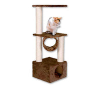 Die Platten und die Höhle sind mit Plüsch bezogen und bieten so bequeme Schlafplätze, während die Sisal-Kratzstämme für eine gute Möglichkeit zum Krallenschärfen sorgen. Die Röhre besteht komplett aus Plüsch.