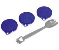 Als praktischen Zusatz beinhaltet das Set außerdem eine Futtergabel, die speziell für Dosenfutter konzipiert ist. Sie ist nur an einer Seite abgerundet. Die andere Seite der Gabel hat eine eckige Form, die optimal zum Entfernen der Futterreste aus den normalerweise schwer erreichbaren Ecken der Dosen geformt ist. So bleiben keine Reste mehr in der Dose zurück.