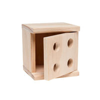 Dieses Intelligenzspielzeug für Anfänger ist aus Holz hergestellt. In der Kiste können kleine Leckereien versteckt werden. Die Öffnungen an der Vorderseite ermöglichen es dem Vogel, die Leckereien zu sehen und ermöglichen ihm zugleich das Öffnen der Kiste. Mit Befestigung für das Käfiggitter.