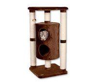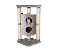 Die Platten und die Höhle sind mit Plüsch bezogen und bieten so bequeme Schlafplätze, während die Sisal-Kratzstämme für eine gute Möglichkeit zum Krallenschärfen sorgen. Ein Spielball, der mit einem Gummiband am Baum befestigt ist, sorgt für Spielvergnügen.