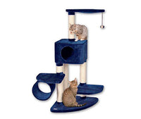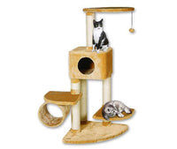 Die Platten und die Höhle sind mit Plüsch bezogen und bieten so bequeme Schlafplätze, während die Sisal-Kratzstämme für eine gute Möglichkeit zum Krallenschärfen sorgen. Die Röhre besteht komplett aus Plüsch. Ein Spielball, der an einem Gummiband am Baum befestigt ist, bereitet Ihrem kleinen Stubentiger Spielvergnügen.