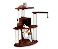 Die Platten und die Höhle sind mit Plüsch bezogen und bieten so bequeme Schlafplätze, während die Sisal-Kratzstämme für eine gute Möglichkeit zum Krallenschärfen sorgen.