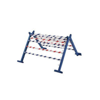 Der Kombisprung ist mit seinen verschiedenen Einstellungsmöglichkeiten ideal, um den Schwierigkeitsgrad je nach Bedarf anzupassen. Die Sprunghöhe kann auf 7 cm, 14 cm, 21 cm, 28 cm, 35 cm, 42 cm und auf 49 cm eingestellt werden. Die Sprungweite ist einstellbar von 7 cm bis 92 cm, je nachdem, wie Sie das Hindernis nutzen. Die Sprungbreite beträgt ca. 62 cm. Im Lieferumfang sind 2 Holzständer und 10 Kunststoffstangen enthalten, die als Steilsprung, Kreuzsprung, Weitsprung oder A-Sprung aufgestellt werden können.