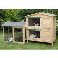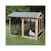 Die hochwertigen Gitterelemente sorgen für Stabilität, während das wetterfeste Bitumendach und die Holzschutzfarbe, mit der das Gehege von außen lasiert ist, für Schutz vor Wind und Wetter sorgen. Eine zusätzliche große Türe erleichtert Ihnen den Zugriff zum Gehege von außen.