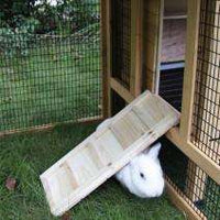Ein weiteres Gitterlement, welches geöffnet und geschlossen werden kann, stellt bei Bedarf die Anbindung zum Maxi Pet Nagerhaus APPARTEMENT (Artikelnr. AK-82800) dar, welches Sie natürlich auch hier bei uns im Shop finden. Am Nagerhaus ist seitlich eine ausklappbare Rampe angebracht, die genau in die Öffnung des Freigeheges passt und so einen sicheren Übergang von Stall zu Gehege bietet (siehe Bild).