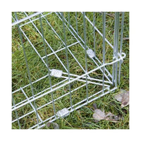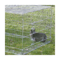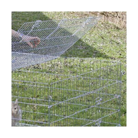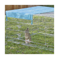 Das Freigehege ist verzinkt und mit vier seitlichen Türen ausgestattet. Zusätzlich ist die Gitterabdeckung aufklappbar, um einen perfekten Eingriff ins Gehege zu ermöglichen. Der Schatten spendende Sonnenschutz ist selbstverständlich im Lieferumfang enthalten. Die Montage erfolgt ganz einfach mithilfe von Erdspießen.