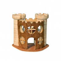 Schöne Hamsterburg aus Naturholz mit verspielten Details.