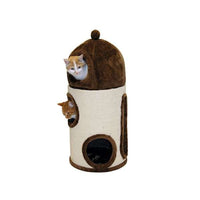 Von außen ist der komplette untere Bereich mit Sisal bezogen und bietet so eine extra große Kratzfläche zum Krallenwetzen. Neben den Eingängen zu den Höhlen befindet sich noch ein Schlitz, der als Sichtfenster für die beiden unteren Etagen genutzt werden kann, so hat Ihre Samtpfote immer alles im Blick. Sowohl die Höhleneingänge als auch dieses Sichtfenster sind mit einem Plüschrand bestückt.