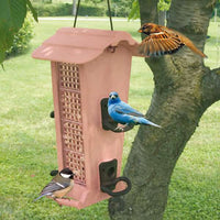 Formschönes Futterhaus aus stabilem, wetterfestem Kunststoff für Wild- und Volierenvögel. Zwei Fächer/Silos erlauben die Fütterung mit unterschiedlichen Samen und/oder Nüssen gleichzeitig.