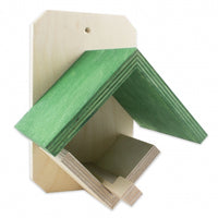 Dieses charmante Futterhaus hat Platz für das Pfiffikus Vogel-Bistro. Durch eine kleinen Keil wird ein Herausrutschen der Dose aus dem Häuschen verhindert.