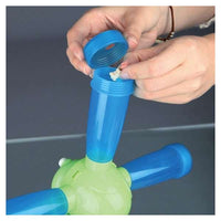 Der Ständer ist mit vier Drehelementen bestückt, für die jeweils zwei verschiedene Sorten Deckel enthalten sind, die durch unterschiedliche Öffnungen unterschiedliche Schwierigkeitsgrade darstellen. Der Hund gelangt dann durch Drehen der Elemente an seine Belohnung.