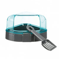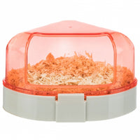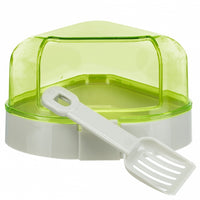 Die Ecktoilette mit Dach aus Kunststoff erleichtert die Sauberhaltung des Käfigs. Sie ist hygienisch und leicht zu reinigen und spart Streu. Mit Streulöffel.