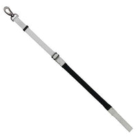 Der D-Ring an der Handschlaufe ermöglicht das Umhängen der Leine bzw. dient der Befestigung z.B. eines Hundekotbeutel-Spenders. Der untere Bereich der Leine ist stufenlos verstellbar. An einer zusätzlichen Öse kann z.B. die Hundemarke oder ein Flasher befestigt werden. Die Leine ist mit einem stabilen, lackierten Karabinerhaken bestückt.