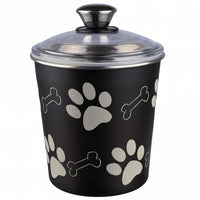 In der schicken Futter- und Snackdose bleiben die Leckerchen Ihres Vierbeiners lange frisch und sind vor Feuchtigkeit geschützt. Die Dose besteht aus rostfreiem Edelstahl mit Kunststoffmantel und ist für die Rutschfestigkeit mit einem Gummiring versehen. Die schwarze Dose mit Deckel hat ein Fassungsvermögen von ca. 1,9 l.