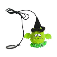 Die Fledermaus ist ca. 9 cm groß, das Gummiband ist ca. 62 cm lang und am Ende mit einem Ring ausgestattet, der das Festhalten vereinfacht.