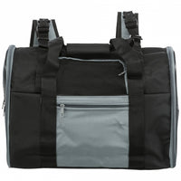Der Rucksack, der ebenso als Tragetasche genutzt werden kann, besteht aus strapazierfähigem Nylon/Polyester und kann zum Reinigen einfach ausgewischt werden. Eine separate Fronttasche bietet Platz für Kleinigkeiten und Zubehör, eine integrierte Kurzleine verhindert das Herausspringen des Tieres während des Transportes. Der Rucksack lässt sich seitlich und von vorne öffnen und ist mit stufenlos verstellbaren Schultergurten und mehreren Netz-Einsätzen für eine gute Luftzirkulation ausgestattet. Außerdem sind auf der Rückseite Laschen vorhanden, die ein Anschnallen des Rucksacks im Auto ermöglichen. Dadurch dass die Seitenteile sich per Reißverschluss komplett öffnen lassen, kann die Tasche bei Nichtgebrauch platzsparend zusammengelegt werden.